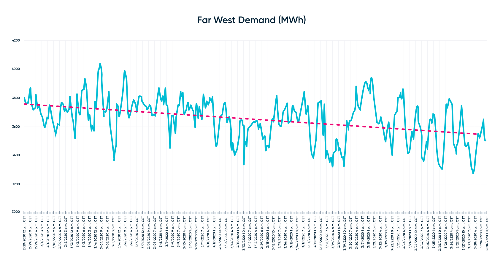 After examining load through the month of March, overall system demand has increased which we believed to be a result of warmer weather. However, when looking at demand in the Far West, there is a downward trend going through the month. This may suggest that industrial load in the area is beginning to fall off in response to lower oil prices.